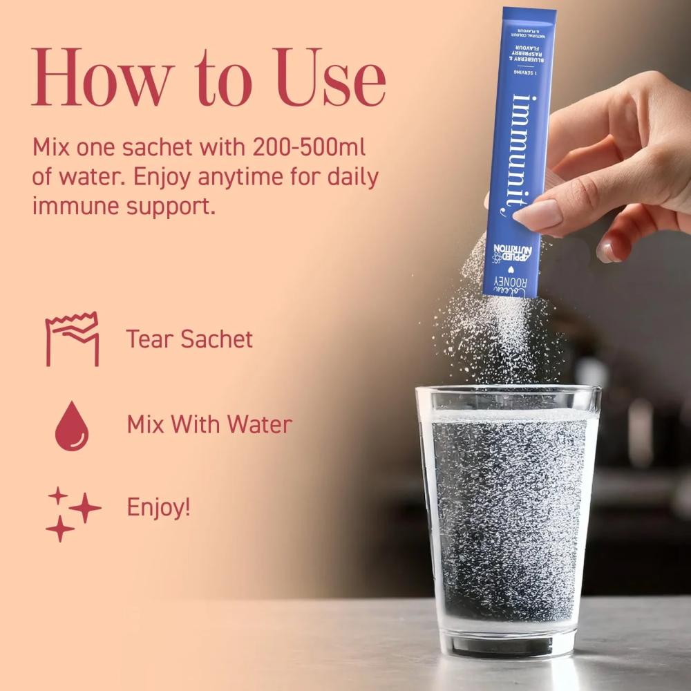 امزج كيسًا واحدًا مع ٢٠٠-٥٠٠ مل من الماء. استمتع به في أي وقت لدعم مناعتك يوميًا.
