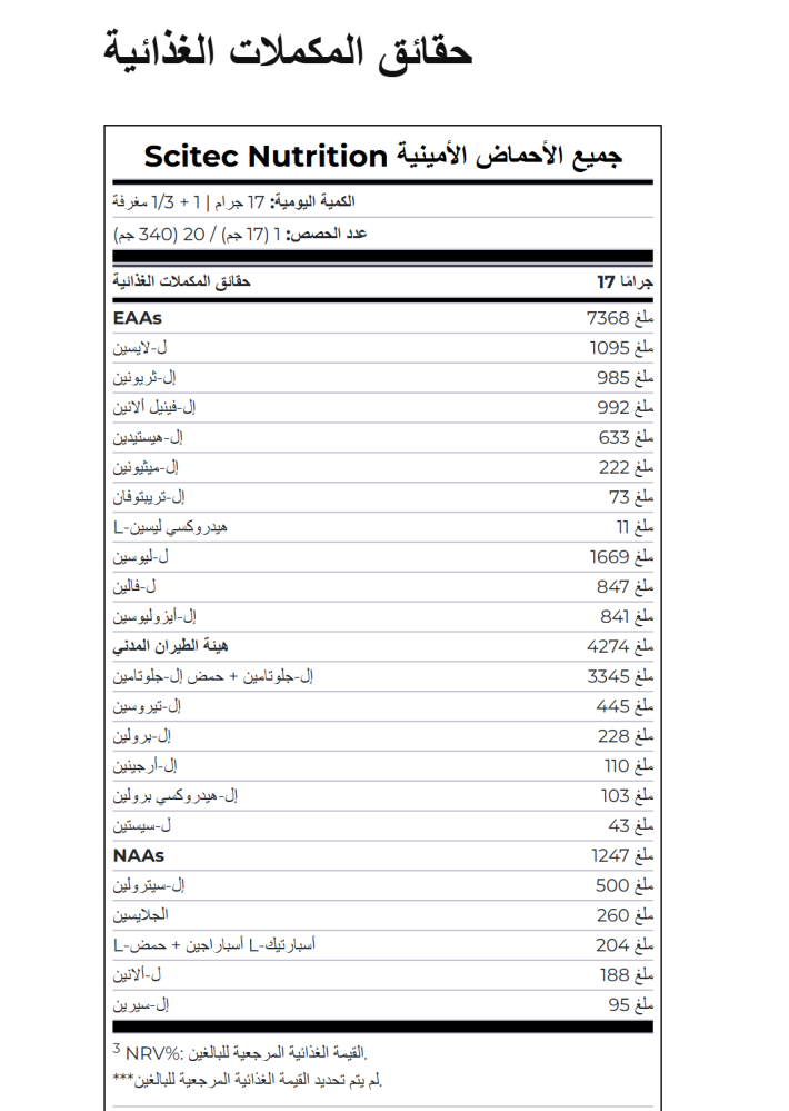 • *مع مجموعة كاملة من الأحماض الأمينية لبناء العضلات