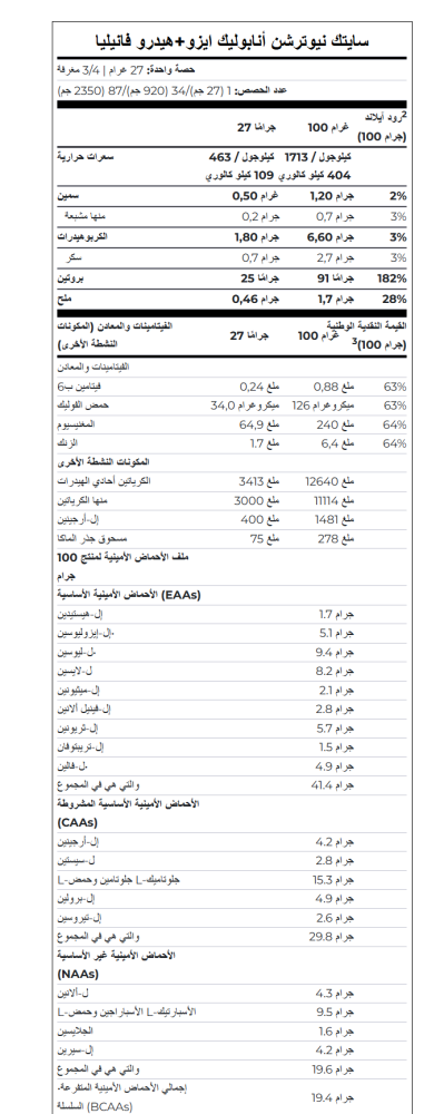 يُذكر أيضًا مُركّب مصل اللبن الفوري "أنابوليك إيزو+هيدرو": فهو يتكون من بروتين مصل اللبن المعزول وبروتين مصل اللبن المُحلل، وهما مُكوّنان شائعان في تركيبات بروتين مصل اللبن. هذا، بالإضافة إلى المكونات الإضافية المذكورة أعلاه، يجعل "أنابوليك إيزو+هيدرو" مُتميّزًا عن تركيبات البروتين التقليدية!