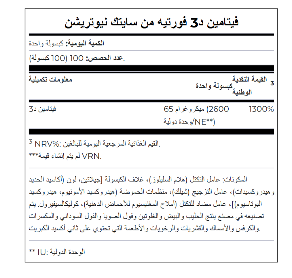 تناول كبسولة واحدة من فيتامين د3 يوميًا مع وجبة الطعام.